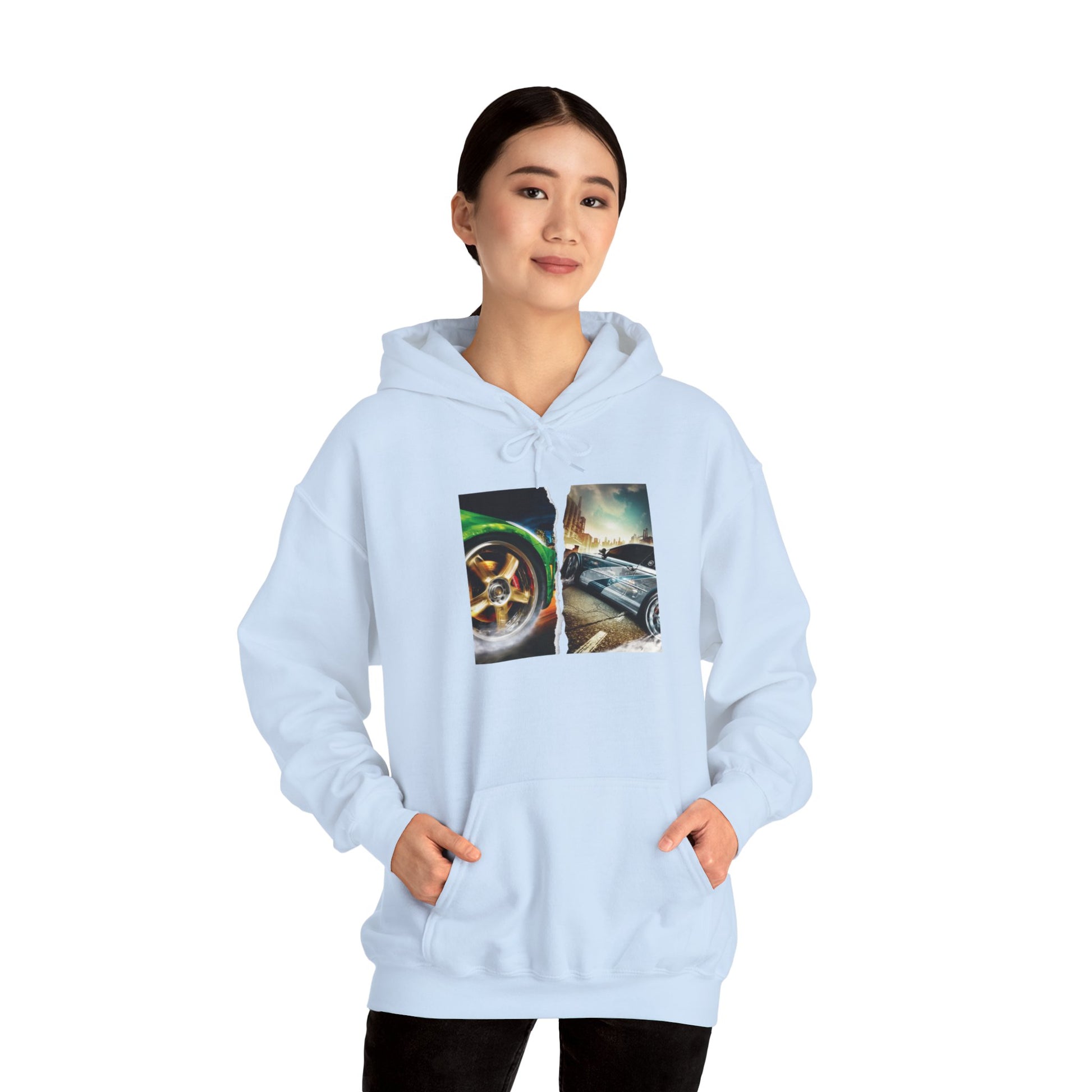 This unisex heavy blend hooded sweatshirt is relaxation itself. Made with a thick blend of cotton and polyester, it feels plush, soft and warm, a perfect choice for any cold day. In the front, the spacious kangaroo pocket adds daily practicality while the hood's drawstring is the same color as the base sweater for extra style points.
